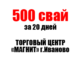 На нашем счету тысячи готовых свайных полей и миллионы забитых свай! Чтобы быть выгодными Вам, мы держим наши цены на самом низком уровне. Мы минимизируем свои издержки, чтобы минимизировать ваши. Это позволяет нам быть лидером рынка свайных работ. Наши клиенты во многих городах России уже оценили все преимущества работы с нами!