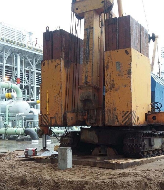 - Забивку железобетонных свай сваебойными установками с гидравлическими молотами Junttan 5-7 тонн.